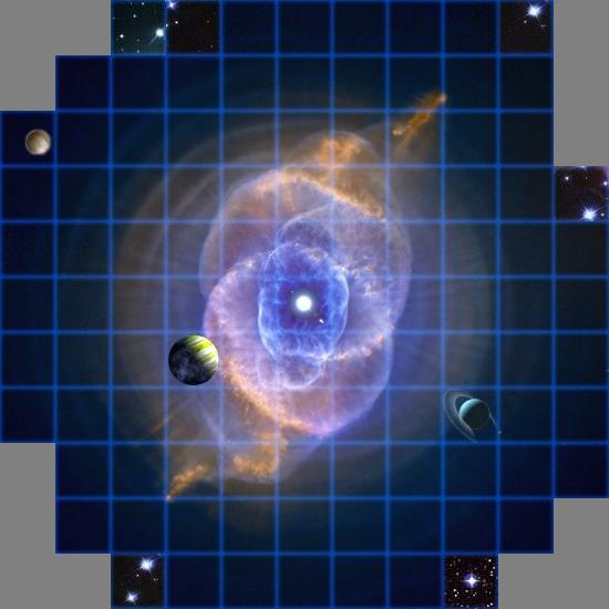 Ein einfaches Planetensystem, das mit einem bunten Hintergrund aufgepeppt wurde. Die Sterne am Rand sind aus anderen Karten geklaut, ursprünglich nur um zu sehen, wie gut sich die Karte ins All einfügt, also kann ich sie jederzeit entfernen, Namen lassen sich auch ändern.